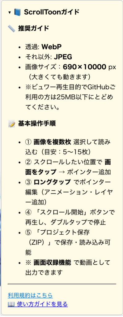 この記事はポペミが作ったscrolltoon(スクロールトゥーン)の基本的な操作について解説しています。