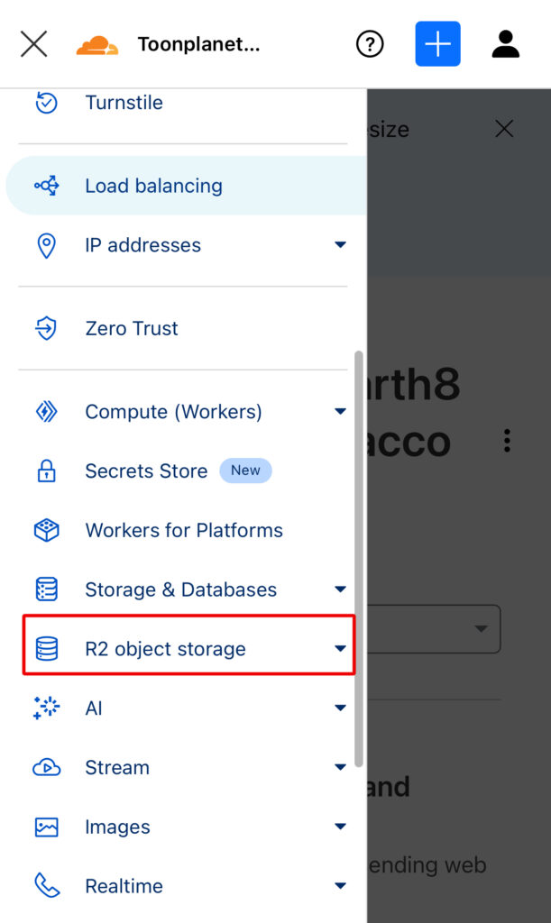左上の三本線のアイコンをタップして、R2オブジェクトストレージを選択します。